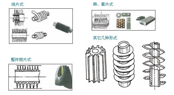 1、繞片式系列:是銅帶、鋼帶、鋁帶在繞片機(jī)的作用下,直接在基管上纏繞而成,分皺褶形和平直形。皺褶的存在既增加了翅片與管子間的接觸面積,又增加了空氣流過時的擾動性,因此提高了傳熱系數(shù)。